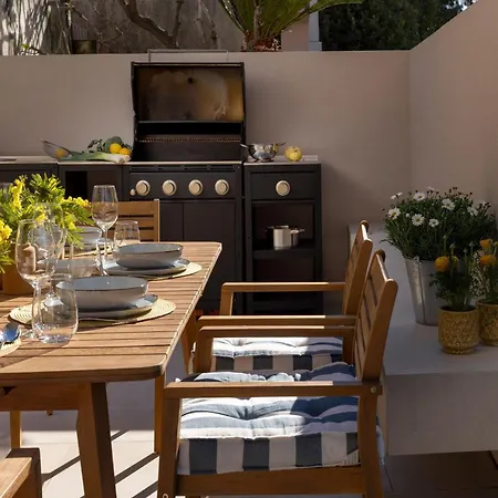 Con una cocina bien equipada como parte de sus instalaciones de autoservicio, el Sea View Apartment Azure también ofrece a sus huéspedes una zona de comedor y un comedor al aire libre para disfrutar de sus comidas.